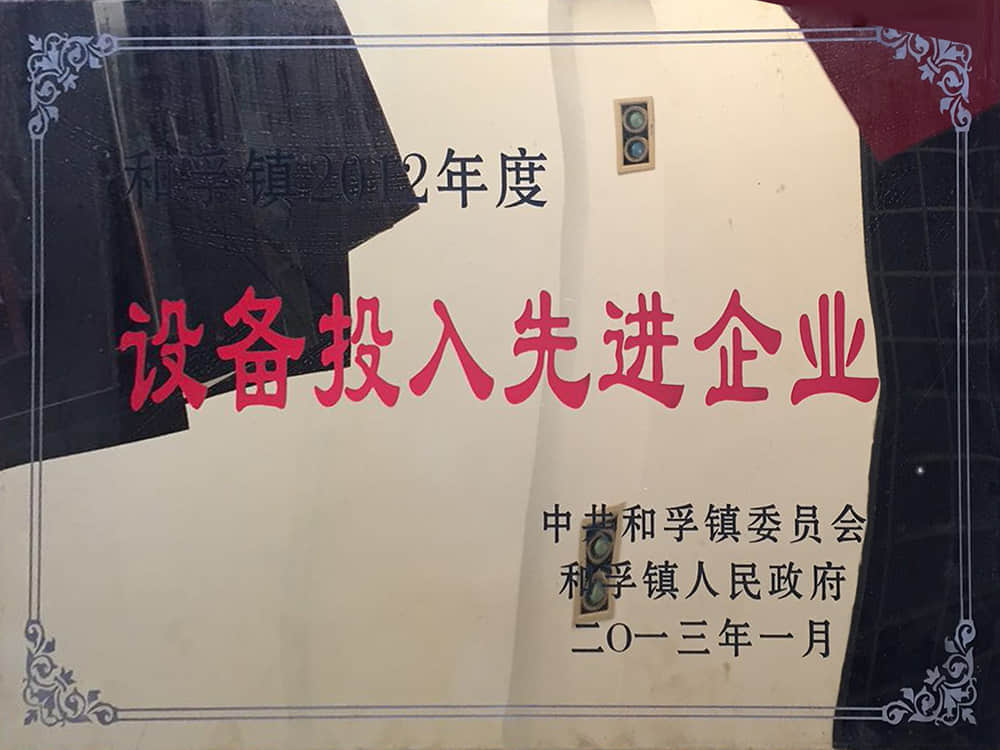 2012和孚鎮(zhèn)年度設備投入先進企業(yè)