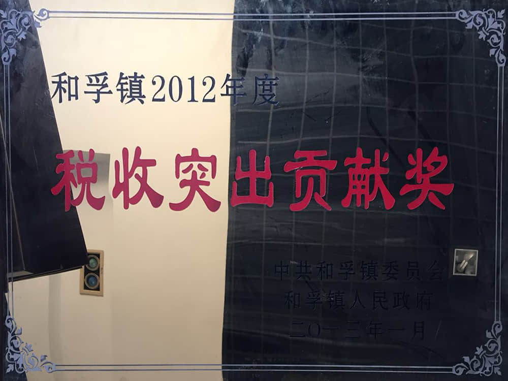 2012和孚鎮(zhèn)年度稅收突出貢獻獎