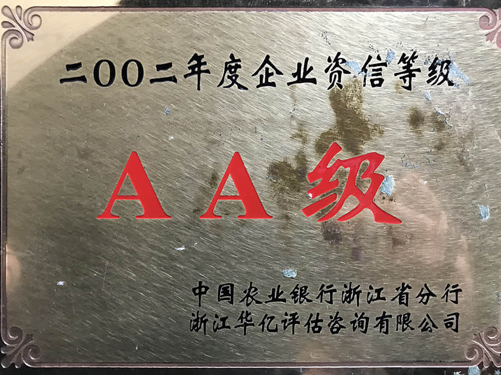 2002年度企業(yè)資信等級AA級