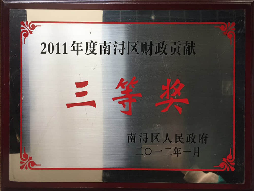 2011年南潯區(qū)財政貢獻獎三等獎
