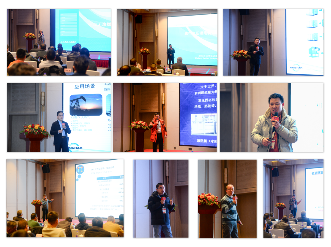 本次會議圍繞著“逐夢聚勢”的主題,來自集團內(nèi)的多位專家紛紛上臺發(fā)言介紹無油螺桿機、氫壓縮機、流體機械、工業(yè)/商業(yè)冷凍、智能高壓軟啟動、高效水冷卻系統(tǒng)等產(chǎn)品,全方位、多角度對代理商/合作伙伴進行了一次專業(yè)性的培訓。與此同時,集團無油機產(chǎn)品部門,開泰克(上海)流體機械有限公司以及其他產(chǎn)品部門,開山壓縮機服務(上海)有限公司分別對他們各自的產(chǎn)品及服務進行了詳細的講解。