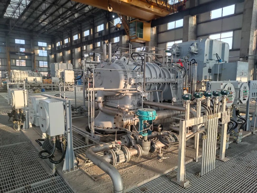 伴隨著國家大力實(shí)施“碳達(dá)峰、碳中和”和“氫能源回收利用”的發(fā)展機(jī)遇。開山氣體壓縮機(jī)在已有工藝介質(zhì)氣壓縮多年成熟應(yīng)用經(jīng)驗(yàn)的基礎(chǔ)上,又開發(fā)了千立方米流量級別、更大壓比的KSG844型超大流量工藝螺桿壓縮機(jī)系列,壓縮機(jī)重量近60噸,最大容積流量可達(dá)1600m3/min),堪稱“大國重器”。該系列超大流量工藝螺桿壓縮機(jī)組是迄今為止國內(nèi)轉(zhuǎn)子直徑最大、單機(jī)流量最大的工藝螺桿壓縮機(jī),將引領(lǐng)中國工藝螺桿壓縮機(jī)行業(yè)向“更大、更高”方向發(fā)展。