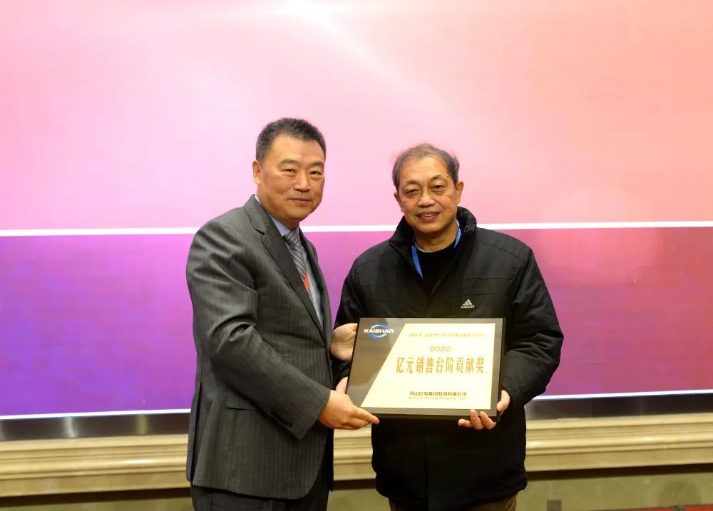 會(huì)議還向23位優(yōu)秀經(jīng)銷商頒發(fā)獎(jiǎng)牌。值得慶祝的是,2022年在較為困難的經(jīng)營(yíng)環(huán)境下,誕生了開山歷史上第一家年度銷售額過(guò)億的經(jīng)銷單位:宜昌博力開山機(jī)電設(shè)備有限公司。